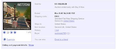 The detailed re-creation of the European city was put up for auction starting at US$20,000, but the property with acquired outright with a single bid at the higher price by eBay user nedstede2769. The identity of Amsterdam’s new owner, who is based in the real-world Netherlands and has no eBay feedback rating, is unknown.
